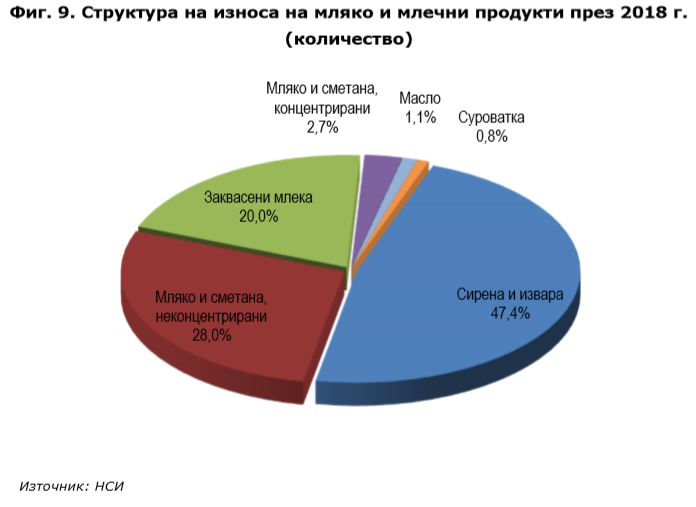 Общият износ на мляко и млечни продукти през 2018 г. нараства с 9,3% на годишна база, достигайки 49 612 тона. Предпоставка за това е повишеното промишлено производство на повечето от основните млечни продукти, се посочва в анализ на Министерство на земеделието, храните и горите. Независимо от силната конкуренция на международните пазари, през последните 3 години се наблюдава постепенно увеличение на износа на млечни продукти от България.