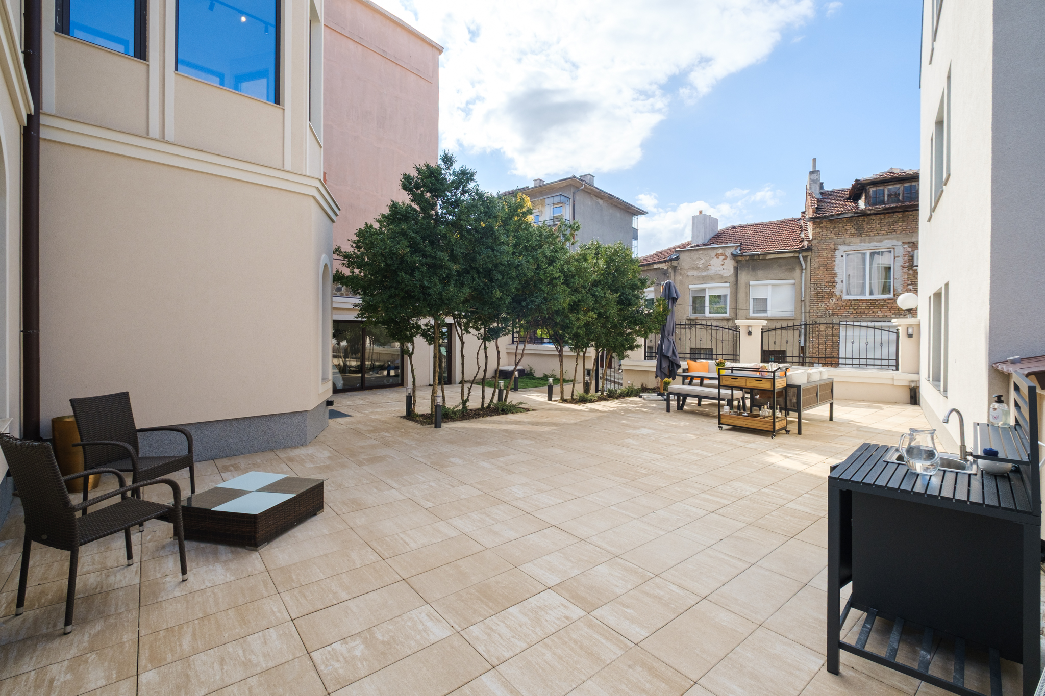 Къщата разполага още с гараж и голяма градина – истинско предимство в сърцето на Пловдив, където летните вечери са „наистина прекрасни за чаша вино“. За допълнителен уют, сутрин гостите се наслаждават на свежи закуски като кроасани, мъфини и кишове от пекарната „Бейкъри арт“.