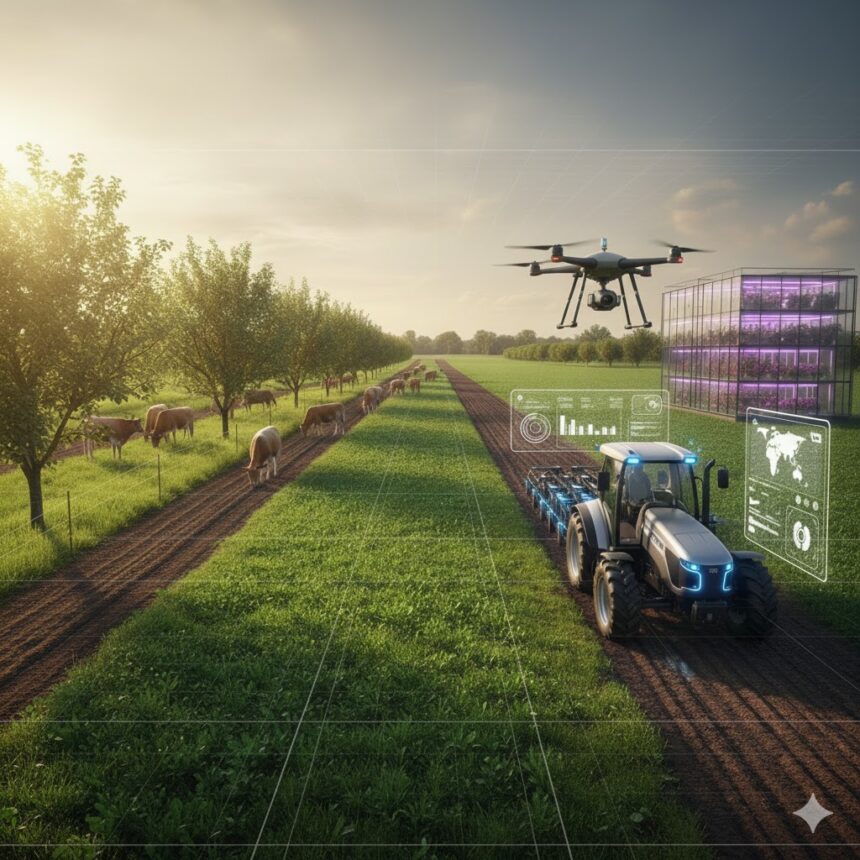 Агротехнологиите (AgriTech) са катализаторът на съвременната трансформация. Прецизното земеделие, използващо GPS, дронове и сензори, дава възможност за таргетирано приложение на ресурси, което рязко повишава ефективността. Роботиката и Автоматизацията (автономни машини) увеличават производителността и осигуряват по-висока прецизност при изпълнението на операциите. В допълнение, Изкуственият интелект (AI) анализира данни за прогнозиране на добиви и ранно откриване на болести, превръщайки управлението на стопанството в проактивен и информиран процес.
