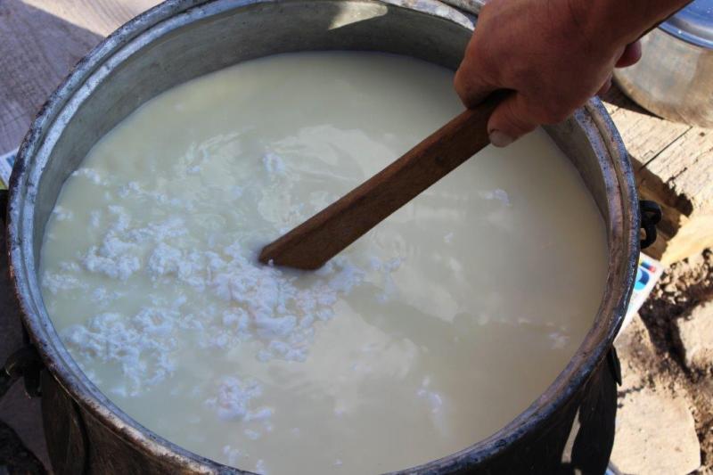 Вече полученото мляко се слага в каца, като се прецежда по специален начин. На кацата й се слага тензух, върху който се разстила памук и се покрива отново с тензух. През това се прецежда млякото и се подсирва вътре в самия съд. След това се чака течността да се хване и да заприлича на гъсто мляко. Процесът става по-бързо, ако течността е топла. Следва повторно разбъркване на млякото, за да придобие формата на ориз. Взема се тукмак (кобилица) и започва да се бие маслото. Самото биене продължава час – час и половина. Цялото количество от кацата се изсипва в казан, който предварително е поставен върху огън. Останалото по съда масло се събира. Сгъстеното мляко, което вече е в казана, започва да се бърка, като това задължително трябва да става отдолу нагоре. В противен случай се претопля и променя вкуса си. Както казва Салих започва да „скърца“. Необходимо е да достигне температурата на човешкото тяло. Извадените след това сирене и извара се изцеждат хубаво и се объркват добре. Осоляват се и престояват в тава за 24 часа. Готовата продукция се пълни в меха. Трябва да се уплътни така, че вътре да не остане въздух. Мехът се слага на дъска и трябва да се обръща всеки ден. Направеното сирене започва да се консумира, когато настъпи есента или времето застуди.