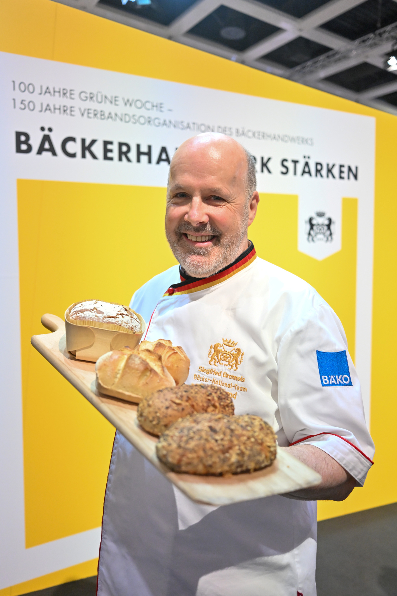 Разрязване на „Хляба на годината“ с федералния министър Алоис Райнер. В контекста на „Зелената седмица“ това е традиционен официален ритуал, с който се открива годината за хлебопроизводителите.